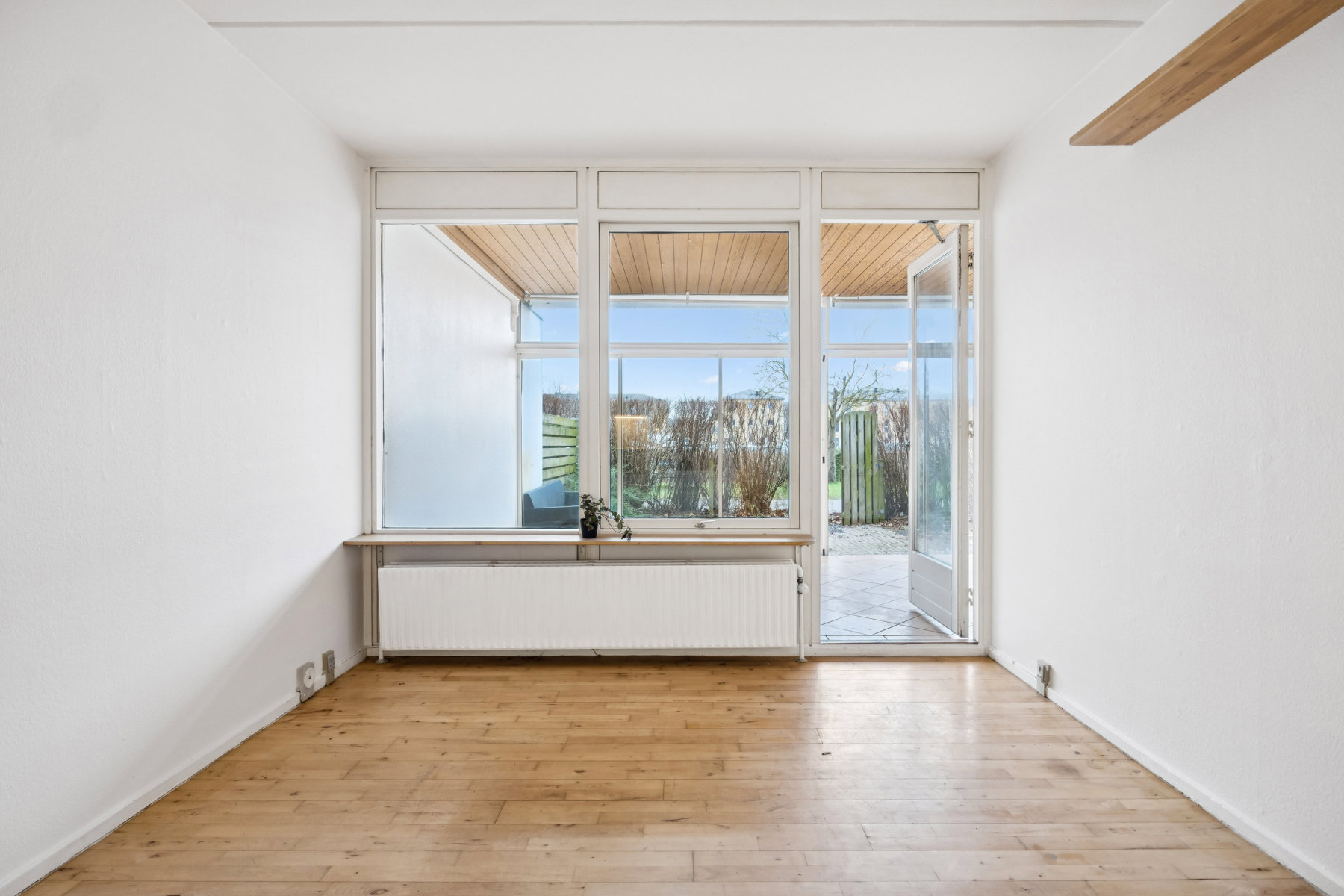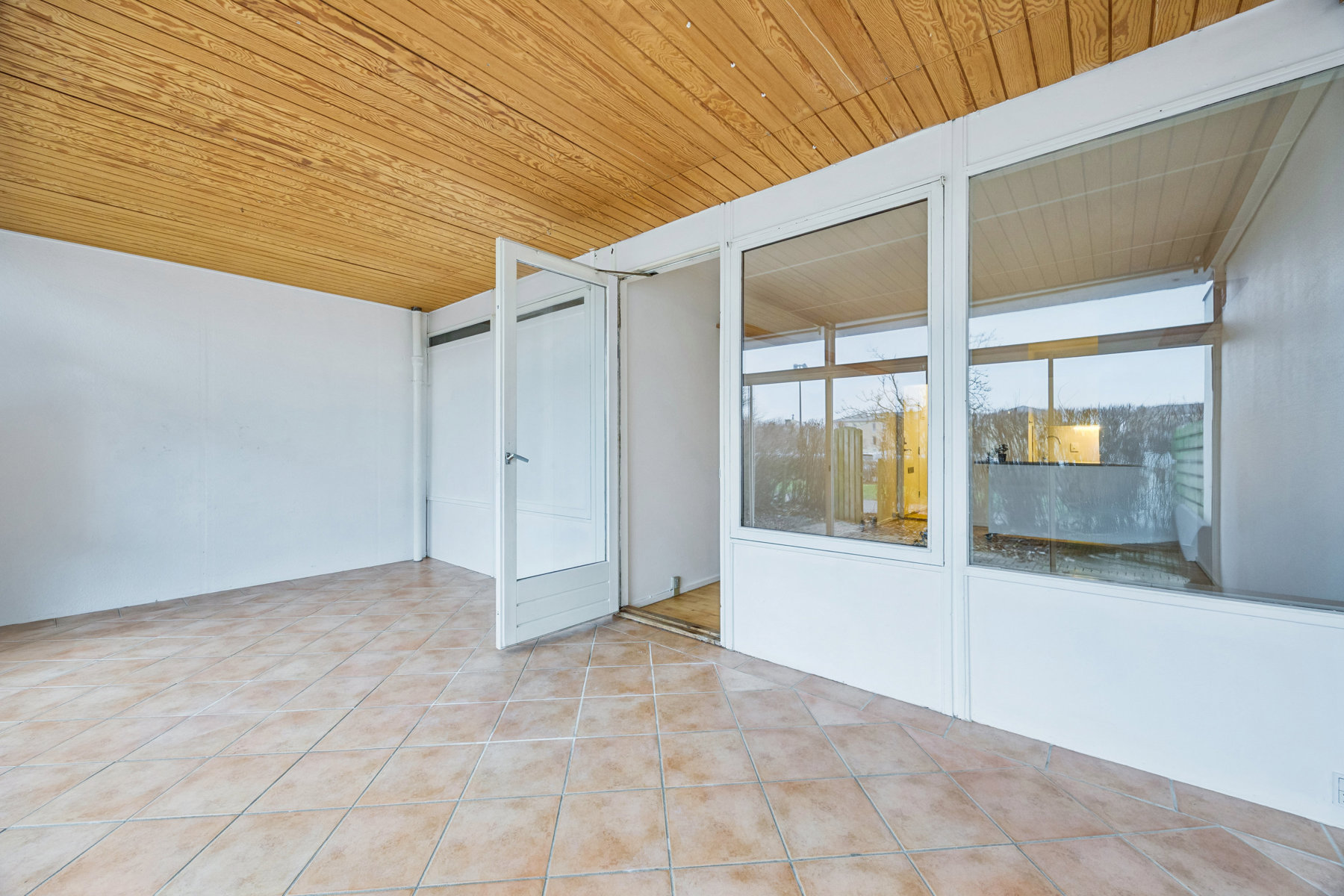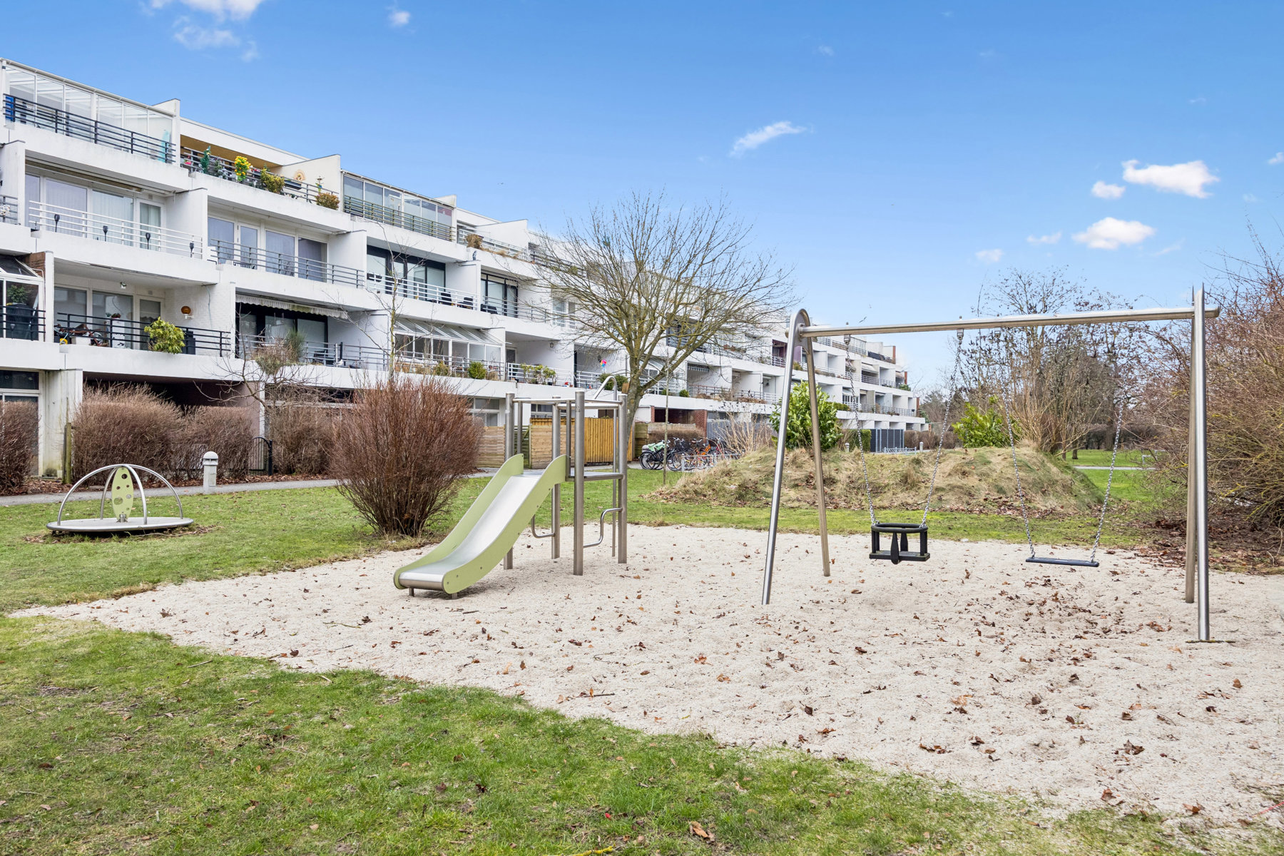 Som noget helt særligt får du en lukket udestue på hele 18 m2, der i praksis fungerer som et ekstra opholdsrum store dele af året. De store skydedøre kan åbnes helt op mod den hyggelige og ugenerede have med terrasse, som lejligheden har enebrugsret til. Herfra er der egen havelåge direkte ud til områdets stisystemer. Beliggenheden i foreningens attraktive vestvendte længe ud mod åbne arealer sikrer gode solforhold og minimal skygge fra nabobygninger.