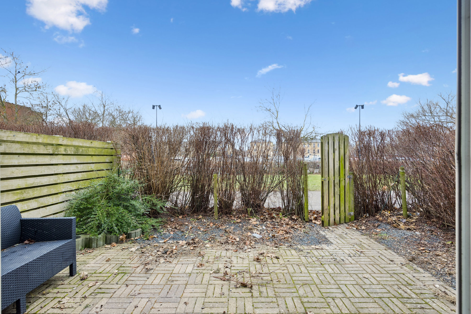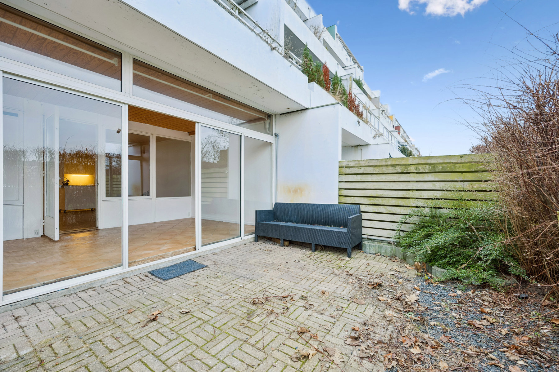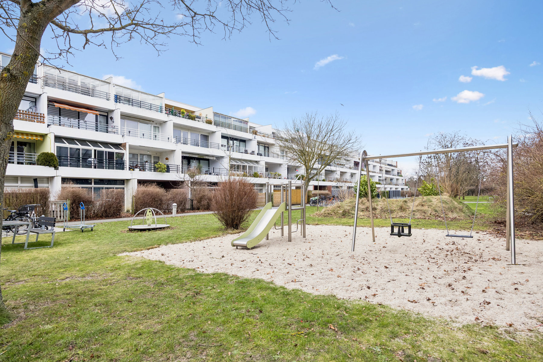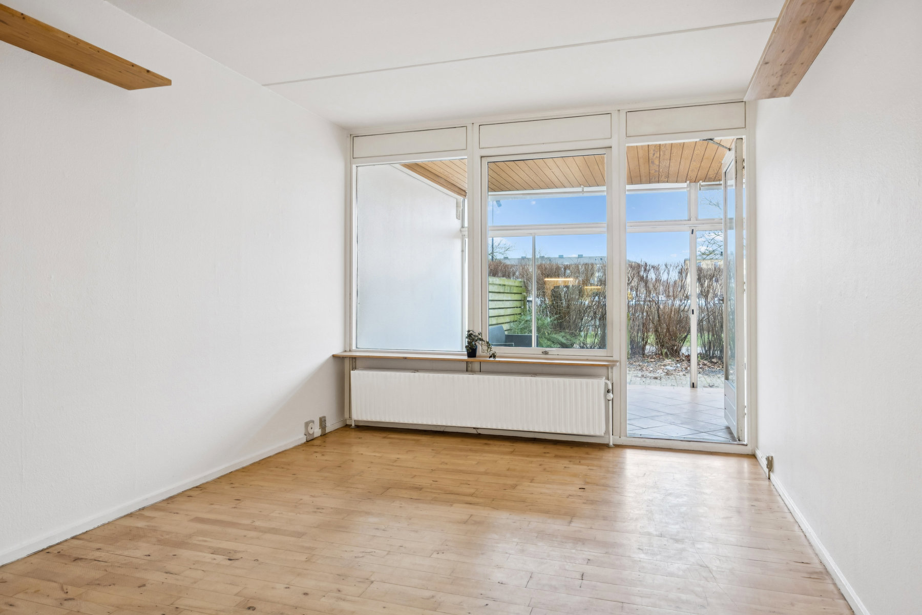 Som noget helt særligt får du en lukket udestue på hele 18 m2, der i praksis fungerer som et ekstra opholdsrum store dele af året. De store skydedøre kan åbnes helt op mod den hyggelige og ugenerede have med terrasse, som lejligheden har enebrugsret til. Herfra er der egen havelåge direkte ud til områdets stisystemer. Beliggenheden i foreningens attraktive vestvendte længe ud mod åbne arealer sikrer gode solforhold og minimal skygge fra nabobygninger.